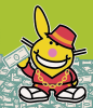 Description: Blinged-out Happy Bunny with fat stacks of cash
